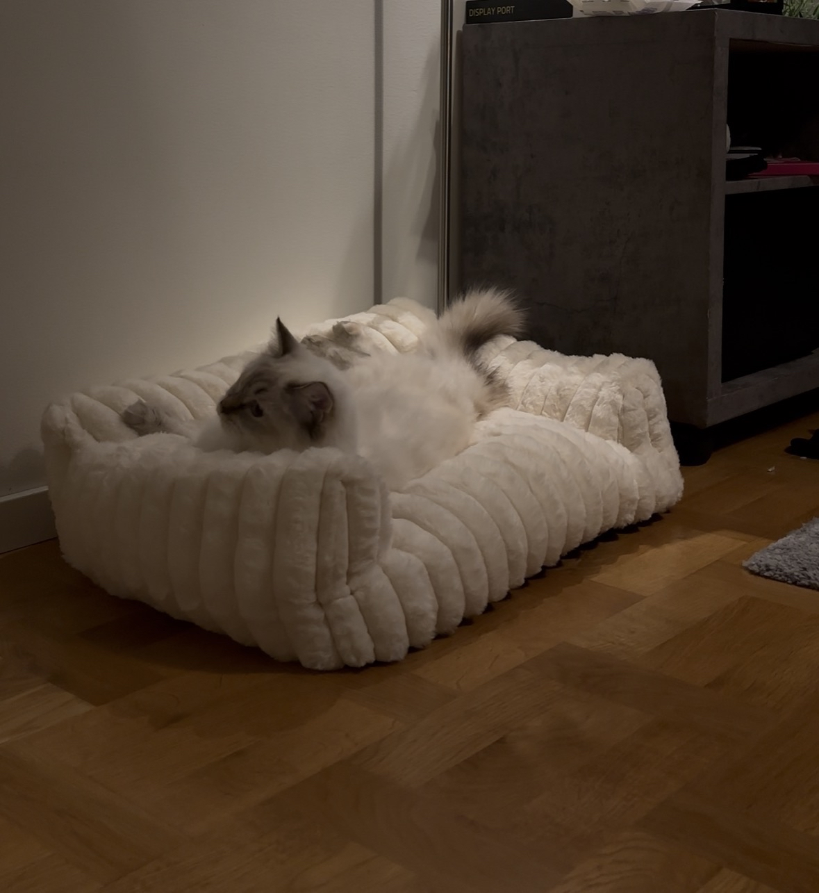 • My cat Luna finally stopped stealing my spot on the real couch! She curls up here every night — total win.